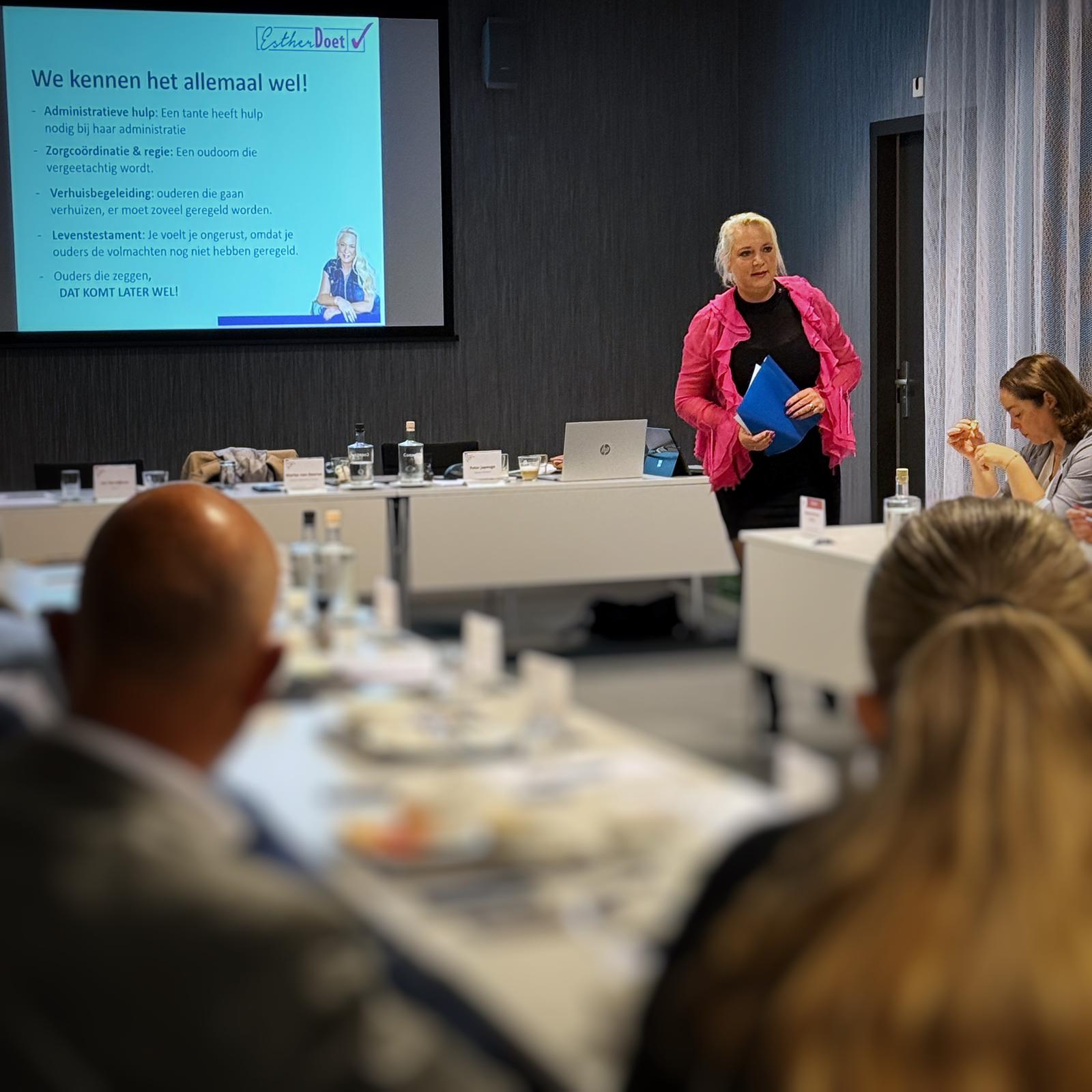 Op vrijdag 14-11 heeft Esther van Leeuwen meer verteld hoe zij senioren en mantelzorgers helpt met allerlei problemen waar ze tegen aanlopen zoals financiele vraagstukken, zorgvragen, testamenenten en levenstestameneten. Ze vertelde over haar leefwijzer-doos waarin je alles kunt doen wat je geregeld wil hebben wat van belang is als je dingen niet meer kan.