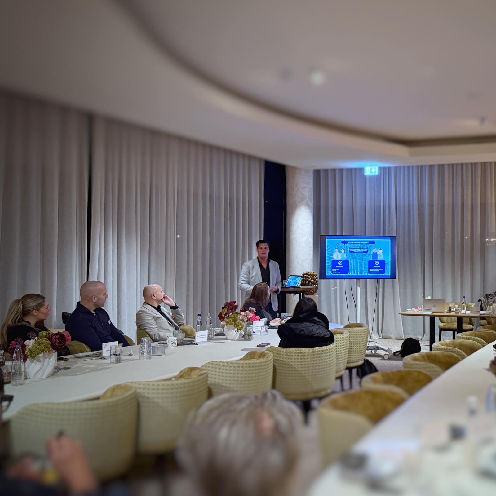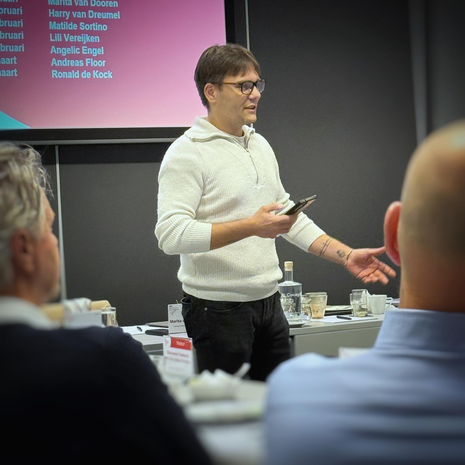 Vrijdag 24-10 gaf Maikel Bennebroek een hele leuke 10-minuten presentatie, waarin hij zich liet interviewen door AI. Maikel is co-eigenaar van een technische drukkerij dat producten bedrukt of borduurt zoals bedrijfskleding, promotioneel textiel, relatiegeschenken, vlaggen en XXL-prints.