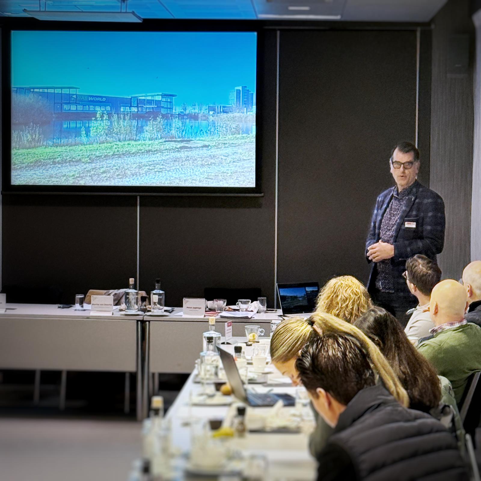 Op 28-11 gaf Peter Japenga van Japenga Architecten zijn presentatie. Hij liet zien met welke projecten hij nu bezig is. Een klant waar hij veel voor doet in Bas Truck in Veghel. In een volgende opdracht gaat hij een groot parkeerterrein ontwerpen.